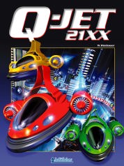 レースゲーム。カードを使ってQ-Jetの駒を進め、コースを3周して早くゴールした人が勝ちます。 プレーヤーは、自分の山札から3枚を引いて手番に1枚を出して、その数だけ駒を進めます。他のQ-Jetがいるマスには進めません。コースは2車線ですが、ところどころで1車線になります。分離帯があるコースでは車線変更ができません。そういった場所で、他のQ-Jetの進行を阻止できます。遠回りすることもできますが、各プレーヤーの手持ちカードの数字は限られているため、途中でカードがなくなったら失格です。